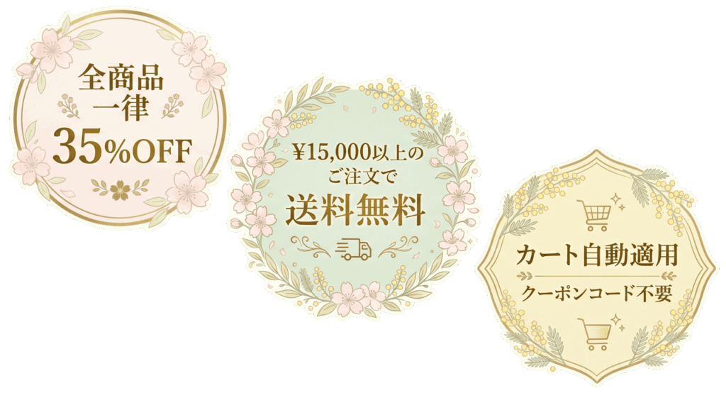 本セール(全商品一律35%OFF)は、クーポンコード「MOTHER25」との併用はできません。